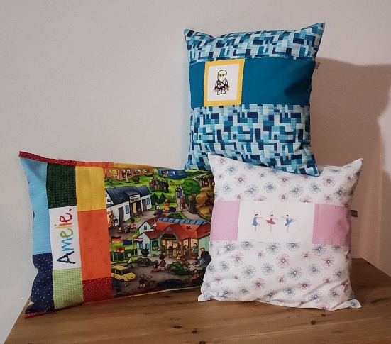 Den Quilt für Chelsea hat Bärbel genäht. Die Kissen für Milo, Lorelai und Amelie sind von Meike.